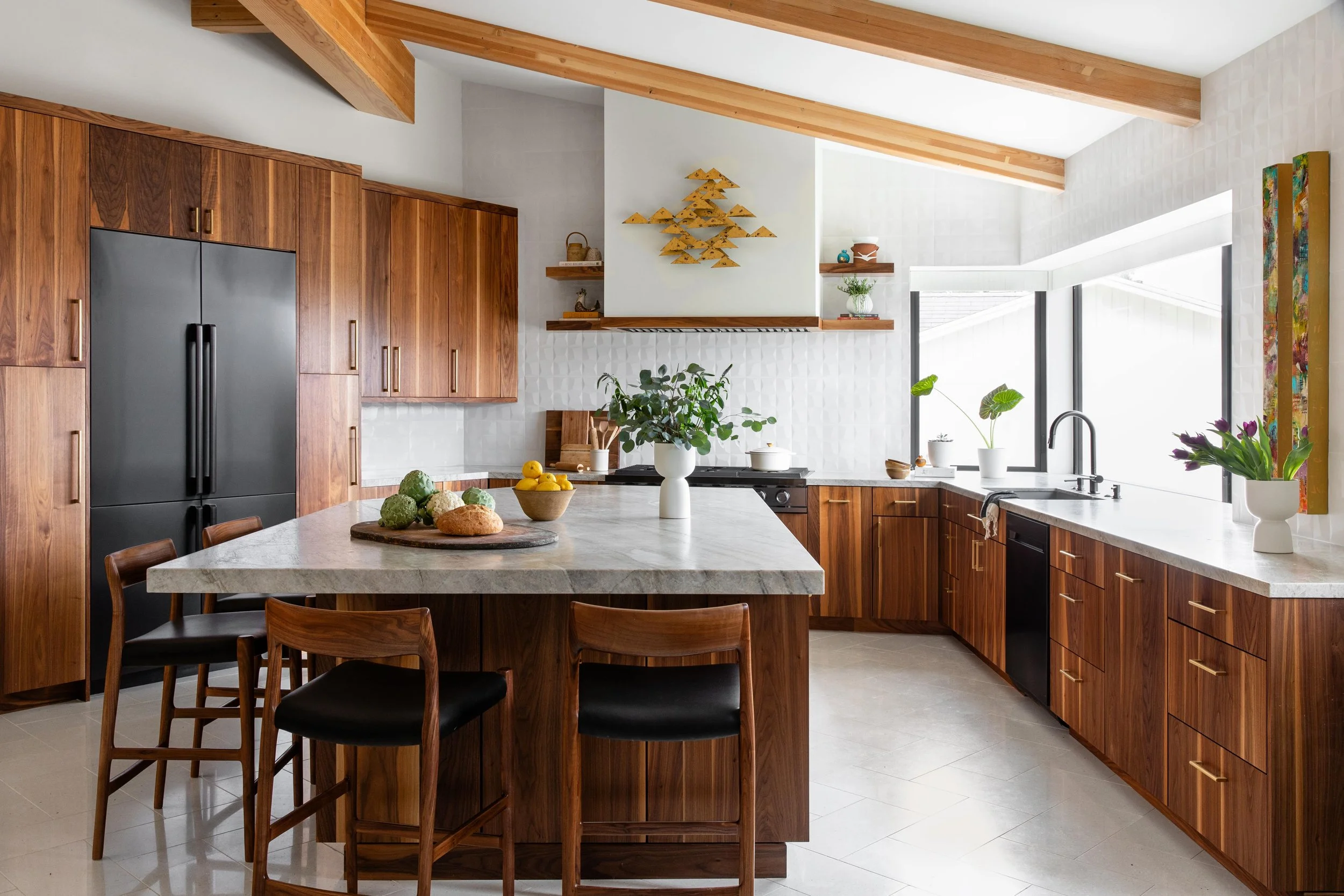Construction of new 1,200 Sq. Ft. ADU, and full remodel and addition to the existing main dwelling. Mid Century Modern bones dictated the modern take on the aesthetic. Natural materials and a neutral palette are juxtaposed with delightful pops of color in furnishings and artwork throughout.